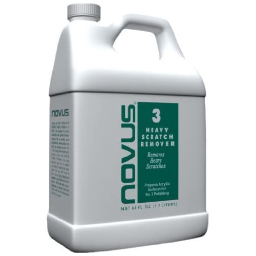 64 Oz| Novus No. 3 removes heavy scratches and abrasions from most acrylic surfaces. This is an aggressive polish and is not intended for use on coated plastics or polycarbonates. Requires both Novus No. 1 and No. 2 polishes for final finishing. |