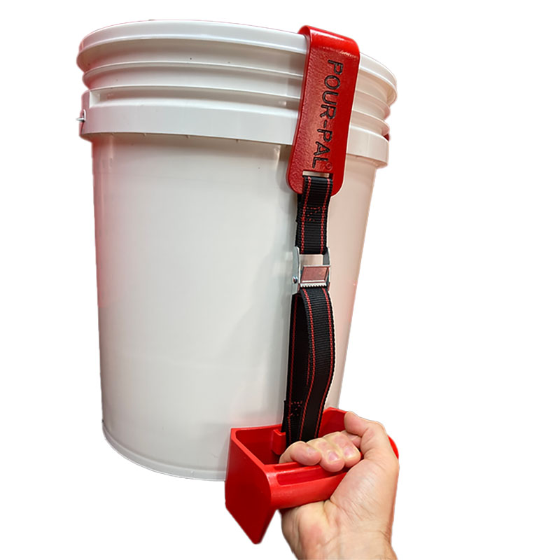 | The Pour Pal attaches to a standard 5 gallon bucket providing a secure bottom handle making pouring easier and more controlled. Bucket NOT included. |