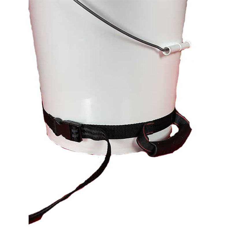 | Pour-Pal Strap solves the same issue as the Pour-Pal Original, but in a more compact version. The Pour-Pal Strap wraps around the bucket near the bottom. Once tightened the rubber backed strap holds the Pour-Pal Strap handle to the bucket allowing better control and ease of pouring. Bucket NOT included. |