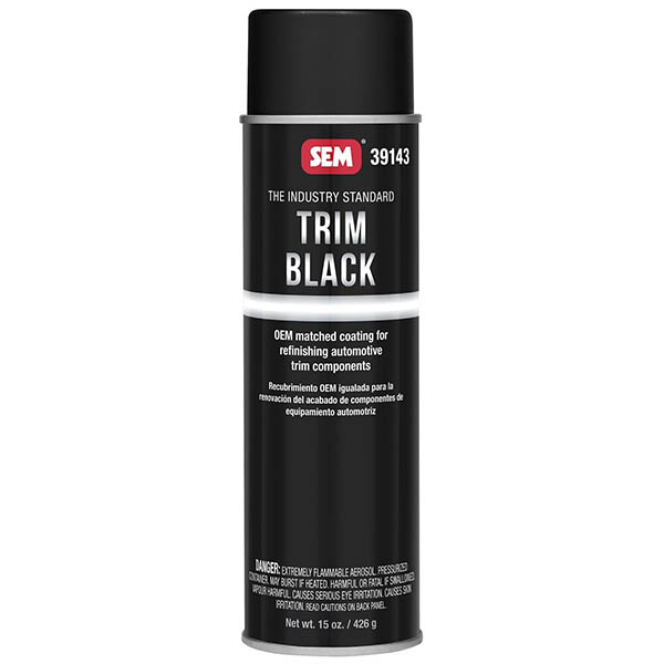 | SEM Trim Black 39143 is the industry standard for restoring faded and peeling exterior trim parts. This paint coating offers maximum adhesion on stainless steel and chrome. |