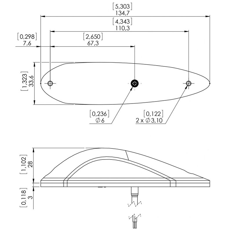 | Recommended size of mounting screw: | M3, stainless steel recommended. Length depends upon placement location on wing tips. |
