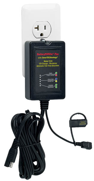 Note: Not recommended for aircraft batteries. For aircraft batteries, see the S2 or S3 series. BatteryMINDer® Model 1510 features a SmarTECHnology™ plug 'n run 1.5 Amp battery charger/maintainer with full-time automatic high frequency pulse desulfator (not high voltage)that can help extend a battery's life up to 4 times its normal life. Ideal for charging, maintaining or recovering 12V flooded, sealed, maintenance-free, starter, deep-cycle, Optima brand sealed AGM, and marine batteries. Worldwide 100–240 VAC 50/60 Hz input. FCC compliant and California Energy Commission certified. The unit can maintain up to four 12 Volt batteries at one time when connected in parallel by using SmarTechnology™ Y-Connectors (part# 210AY) or customer supplied 18-Gauge insulated wire. Quality Components The BatteryMINDer® is constructed using a 12ft. power cord and heavy-duty battery clips as well as other top quality components to provide lasting performance. The 90-240V AC 47-63 Hz input allows for worldwide use. Energy Star Rated If you're looking for assurance that this product is the real deal, look no further than its Energy Star rating. The BatteryMINDer® meets strict energy efficiency guidelines set by the U.S. Environmental Protection Agency and the Department of Energy, so you can rest assured it performs at the highest of levels. Certified Efficiency Not only is this unit FCC Certified as meeting or exceeding the requirements set forth for electronics products by this commission, but it is also certified by the California Energy Commission as meeting the current efficiency standards Quadruple Your Battery's Life The SmarTECHnology™ Plug 'n Run 1.5 Amp battery charger/maintainer system features a full-time automatic pulse desulfator that can help extend a battery's life up to 4 times its normal life when compared to new batteries that are not being properly charged/maintained over their lifetime. Just plug it in and the BatteryMINDer® takes care of the rest. The Right Charge Every Time An automatic high-low temperature compensator is installed in the BatteryMINDer® to ensure that batteries will never be overcharged or undercharged, regardless of the operating temperature. This ambient temperature sensor is installed for a -4°F (-20°C) to 122°F (50°C). Multi-Talented Performance If you're looking for versatility, look no further! The BatteryMINDer® can be used for charging, maintaining or recovering 12V batteries. The unit uses automatic full-time high frequency (not high voltage) pulse-type desulfation that is ideal for helping to recover weak batteries. Works with a Variety of Battery Types Flooded, sealed, maintenance-free, starter, deep cycle, Optima brand sealed AGM, and marine batteries — the BatteryMINDer® handles them all. This unit can even maintain up to 4 batteries at one time when connected in parallel (parallel connection requires use of Y-connectors, Item# 27879, sold separately, or an 18ga. insulated wire, not included). Dependable Protection For your safety, the well-being of your battery, and your own peace of mind, this charger system is equipped with built-in reverse polarity, short circuit protection and over-temperature protection. |
