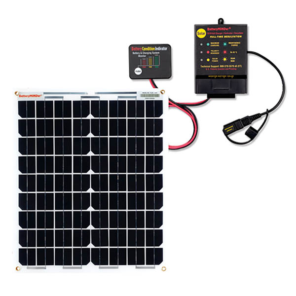 SCC1224-AA-S2: 12V/24V Controller w/20 Watt Solar Panel Battery Charger optimizes all solar panels charge rates. It actively monitors your battery's voltage any time the sun is up. The internal program adjusts its output several times a second based on this reading to quickly and correctly charge your battery. When used as a maintainer, the BatteryMINDer® is guaranteed to maximize your battery’s life and storage capacity. The long-term float (maintenance) stage can add years of service. This solar battery charger/maintainer/desulfator prevents over/under charging. It also safely extends the life and performance of all batteries. Solar battery charger SCC1224-AA-S2 works with 12/24V Gill Aviation Batteries. |