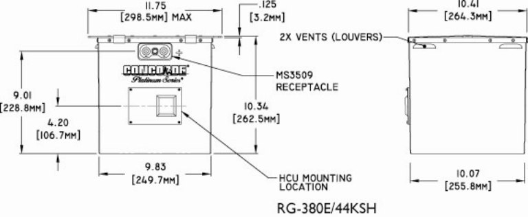 Concorde recombinant gas (RG® Series) valve regulated lead acid (VRLA) heated batteries for engine starting and emergency / essential power applications are constructed with cutting edge Absorbed Glass Mat (AGM) technology. Concorde’s proprietary PolyGuard® Microporous Polyethylene Separator shields the positive plates against shorting, shock or vibration. No other manufacturer offers this dual layer insulation protection feature. RG-380E/44KSH is constructed in a fireproof stainless steel container with side louvered vents, a stainless steel cover and stainless steel hold down bar.