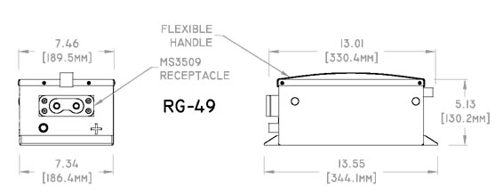 RG-49 is a fire resistant battery with a powder coated aluminum container with riveted cover. Two metal foot brackets are welded to the battery container on each side. Vent tubes are integrated into the container. MS3509 terminal receptacle. |
