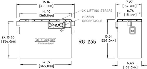 The RG-235 is a Concorde Platinum Series Aircraft Battery. The Platinum Series is comprised of premium hand made AGM Aircraft Batteries with excess power for many applications. RG-235 is a 24 volt battery designed for turbine engine starting and emergency power. Recombinant Gas - The RGŪ Series are low resistance, valve regulated lead acid (VRLA) batteries.