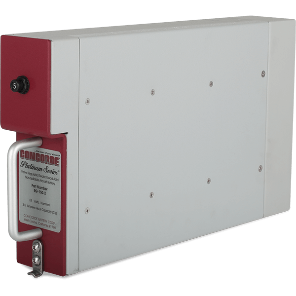 The RG-150-2 is a Concorde Platinum Series Aircraft Battery. The Platinum Series is comprised of premium hand made AGM Aircraft Batteries with excess power for many applications. The RG-150-2 is an ARINC rack mountable aircraft battery. Avionics Battery for lighting, standby, emergency power. Protects and extends the life of other avionics. Concorde Emergency Batteries float directly on the DC buss with no need for a dedicated charger. This results in a high inrush current which extends battery life with fast recovery time from discharge. With the battery floating directly on the buss, transient spikes in the DC power are absorbed. These batteries are self regulating on charge and will take only the current required to maintain it at full charge. Recombinant Gas - The RGŪ Series are low resistance, valve regulated lead acid (VRLA) batteries.