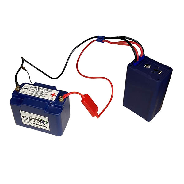 | 48″ Long Quick Connect Charging/Jump Start Cables. You can permanently install this quick connect cable to your battery (lead acid or lithium) that can be used for quick, easy access for charging or be used with a portable jump starter (not included) to jump start your battery in seconds! No removal of seats, no removal of battery covers, no tools needed, no time wasted! Engineered and designed to carry 400 amps of energy without melting the wire by using 150 strand insulated copper wire. The standard EC5 SAE fitting will fit many standard portable jump pack on the market today, but if you are not using the EarthX jump pack, make sure to check the polarity of your jump pack connection (positive to positive, negative to negative). |