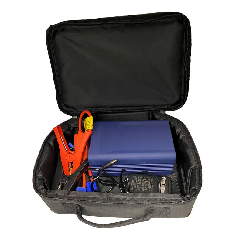 | This is a 12V/24V jump pack that can boost just about anything! Very compact and the entire kit is only 4 pounds.  This jump pack uses the technology of lithium iron phosphate (LiFePo4) chemistry, not Lithium Cobalt (LiCoO2). LiFePo4 is the most powerful, safest and most robust of all the lithium chemistries, plus double the life span of lithium cobalt packs. Examples of what it can jump start: automobiles, diesel trucks, motorcycles, boats, construction equipment, experimental and certified aircraft, tractors, snowmobiles, ATV/UTVs, riding lawnmowers, and so much more. Fully charge the unit prior to its first use. Press the power button to check the state of charge (power level). JUMP STARTING