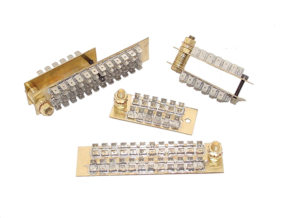 | Discourage those pesky (and “noisy”) electrical gremlins and ground-loops by using our Ground Blocks as a centralized grounding system. These are hand-made from .04” flat brass stock, sheared to size, with 24 or 48 Fast-On tabs securely soldered into place. Ships complete with installation hardware—brass bolt, nuts, internal-tooth lock washers, and spacer washers to accommodate any thickness of firewall. Most projects will require a single 24-point Ground Block on the cockpit side of the firewall; “loaded” electrical systems may require the 48-point block. A full “firewall ground kit” is also available in two sizes for composite aircraft needing ground points on both sides of the firewall. Choosing A Ground System: Most projects can do the job with a single, 24-point ground block on the cockpit side of the firewall. Many electrical accessories forward of the firewall get an electrical ground by virtue their mounting on a metallic firewall - OR - grounded through a mounting on the engine. Only projects with a very busy electrical system will need 48 grounds behind the panel. Airplanes with composite firewalls need some ground points on the forward side. The full-up firewall ground kit includes a long brass bolt with sufficient brass washers to shim between the two ground blocks on a thick, composite firewall. Single ground blocks are shipped with a shorter brass carry-through bolt, washers, and nuts for sheet metal firewalls. |