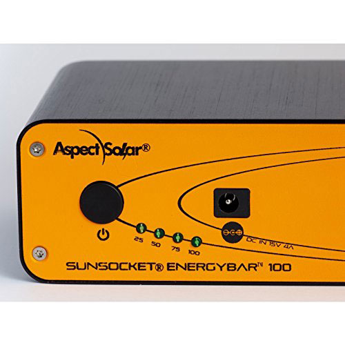 | The EnergyBar 100 provides the freedom to take your charge wherever you travel for your portable solar power needs. This battery packs up to an incredible 25hrs of portable solar power for smartphones, 3 hrs for a laptop, or up to 10 hrs for LED televisions. |