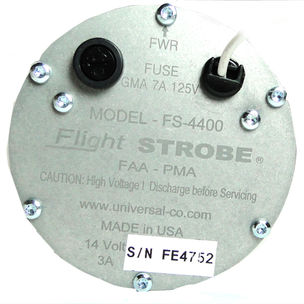 FS-4400 FLIGHT STROBE flashes on/off. We set the flash rate at about 50/minute.