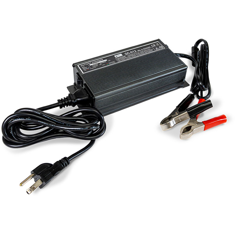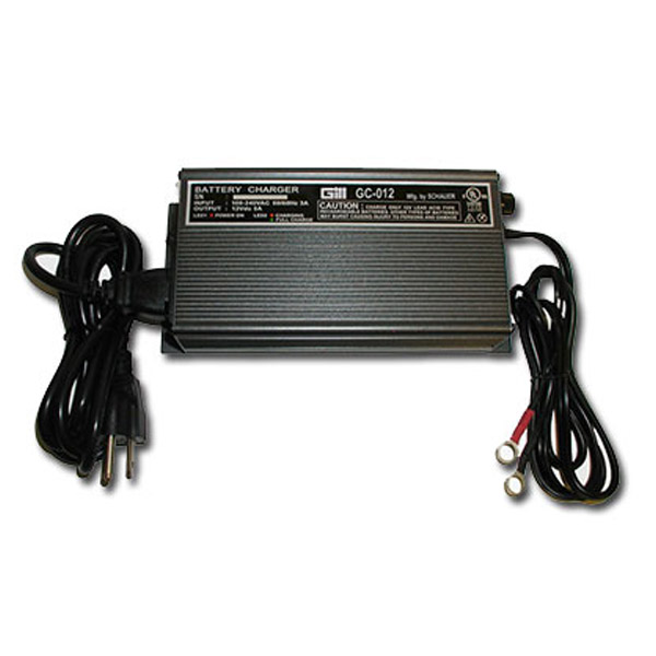 IMPORTANT: These chargers will only function when connected to 110-120V input. Do not connect them to 220-240V or you may damage the charger. The Gill GC-012 VDC Charger is lightweight and is built in a high strength aluminum case. This is fully automatic and provides a 3 stage charger can be left on the battery for long periods. The LED's light shows the status of when the power is on, charging, and when the battery is charging. The circuit protection is reversed polarity and short circuit protected (fused). The power cord length is 6-feet and a 4-foot charge cord with alligator clips included. The Charge control is modified to a constant current charge and a constant finishing voltage, then to a float standby. The Gill-012 VDC Charger is UL and CE approved. The charger is supported by the manufacture Gill Batteries with a 2-year warranty. |