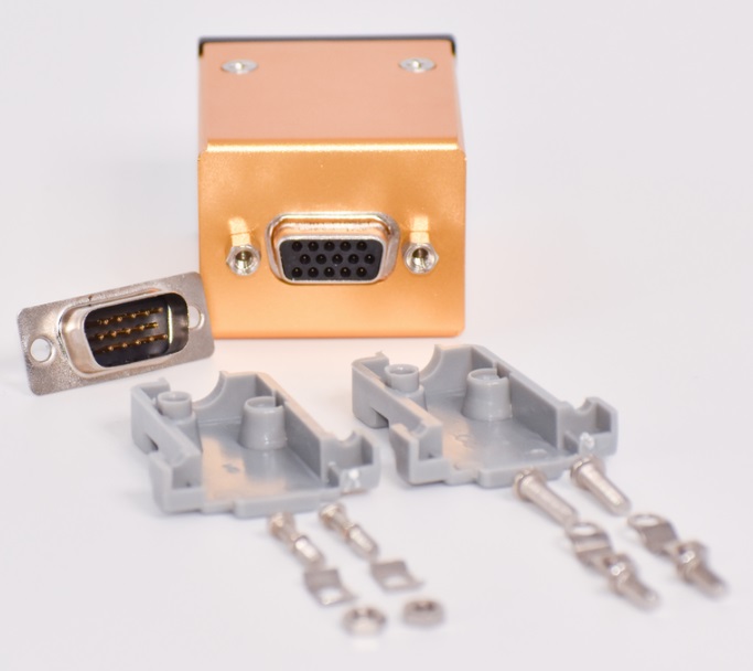 The connector provided is from 1910. Impossible to install under the panel. Requires soldering on a bench and the back shell adds a lot of depth. Used only because it was is recommended for panel mount power. Replaced connector provided with a standard DB15 but delayed us a week