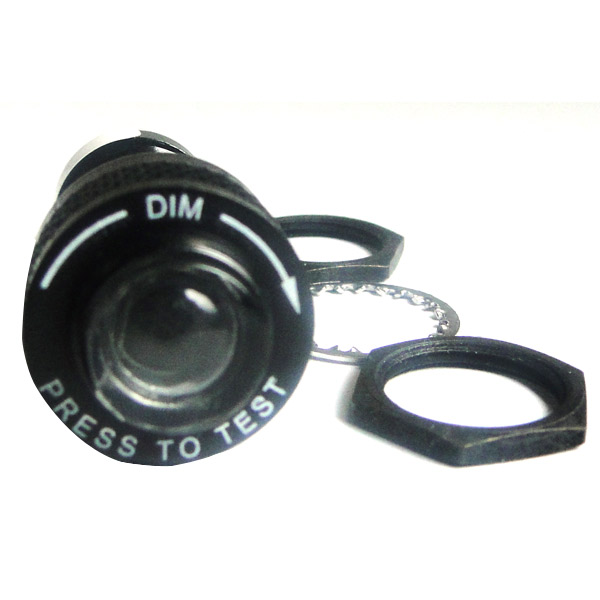 | Miniature press-to-test indicator with built-in bulb testing device. Adjustable dimmer. Uses #330 (12V) or #327 (24V) bulb. Bulbs NOT included, order separately. Part numbers for replacement bulbs are 11-04016 (GE-330) and 11-04015 (GE-327). See "Accessories" tab to purchase. |