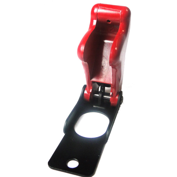 Prevents inadvertent operation of the switch. Switch can be operated only when the spring-loaded guard is lifted up. Returning guard to the down position forces the switch lever to the off position. Single-hole type for neck-mount switches such as AN3021 and AN3027. Three-hole type for panel-mounted switches such as AN3023. Color: Red. |