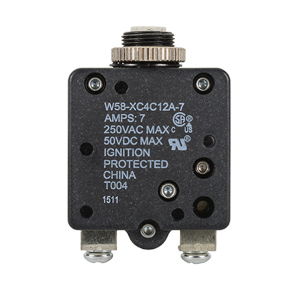 These bi-metallic single pole breakers weigh less than 2 oz. and are especially suitable for homebuilt aircraft. Used as original equipment in Beech, Cessna and Piper aircraft. Maximum operating voltages: 32 VDC and 250 VAC (to 400 Hz).
