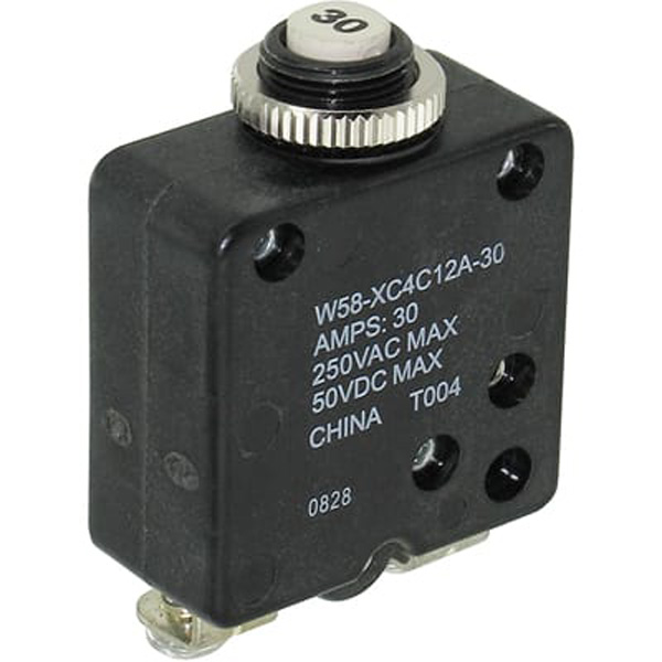 | These bi-metallic single pole breakers weigh less than 2 oz. and are especially suitable for homebuilt aircraft. Used as original equipment in Beech, Cessna and Piper aircraft. Maximum operating voltages: 32 VDC and 250 VAC (to 400 Hz). |