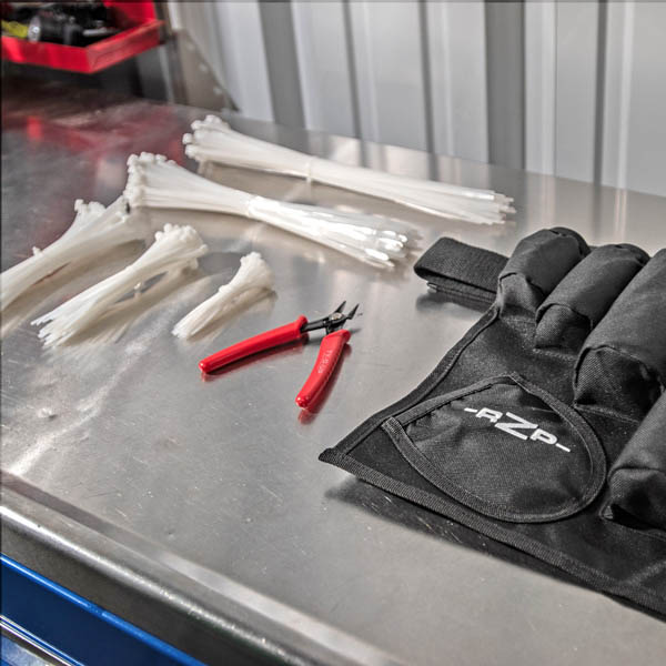 Along with the customized holster for the Ty-D-Up flush cutter and the all-weather 50-inch long canvas belt makes all your jobs go faster, cleaner and easier. Grommetted corner holes will also allow the user to secure or carry the RZP as an over the shoulder carrier or can be positively affixed to a surface of your choosing. |