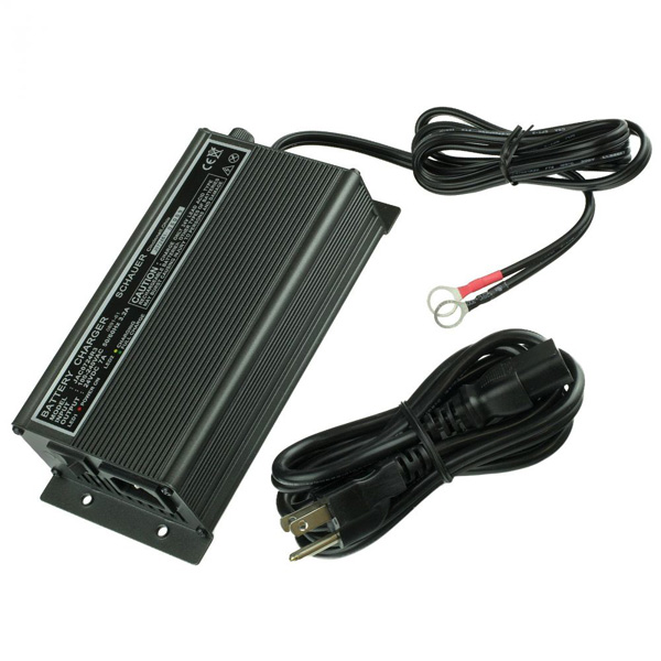 Intelligent chargers follow battery impedance to end of charge cycle for all battery types. Fully automatic. Red LED indicates AC power on, yellow LED indicates the battery is charging, green LED indicates float mode. Aluminum case. |