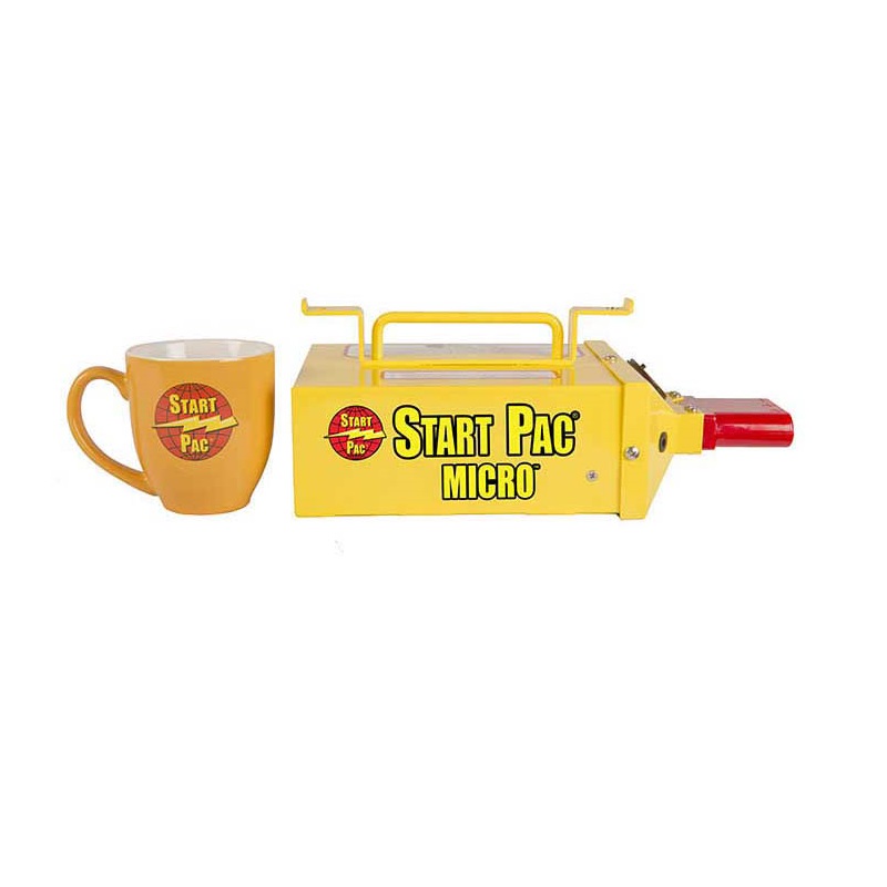 Note: Coffee cup for size reference only. Not included. Handheld 12v DC Aircraft Engine Starter. Not only can the START PAC MICRO® be used for all 12V aviation applications (helicopters and fixed wings), but it will also jump start any type of engine running on 12V. This unit is specifically designed for engine starting only. This unit is the sturdiest 12V lead acid jump starter on the market, capable of starting either piston aircraft or experimental aircraft. Small, powerful and light weight, it will allow you to start your engines swiftly, preventing any downtime. The environmentally responsible, low VOC powder coating protects the case from wear and poor weather conditions. |