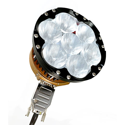 The Landing light "-7UN" version offers a circular and uniformly round beam pattern so there is no "up" orientation to follow for the Landing version "-7UN" lights. Because of this the power connector can be oriented (rotated) in any position (360 degrees) desired for clearance or other reasons / preferences.