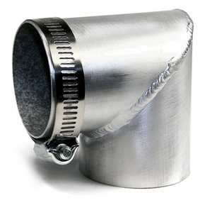 | This unit is designed to slide over the end of the 2” O.D. tube protruding from a cabin heat box that extends through the firewall. The short end of this unit is expanded to 2” I.D. One stainless steel clamp is furnished with the unit. If you use scat tube, the 90° angle allows you to run the scat tube parallel to the firewall and away from undesirable areas (brake pedals, etc.) Constructed of seamless 6061T4 .028 wall tube. Weight: 1.4 oz. |