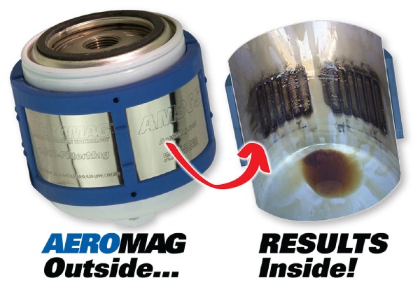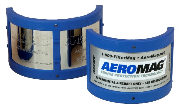 | AeroMag®  Maximum Engine Protection…In a Snap! If lubrication were perfect, nothing would ever wear out. Note: Sold as a single unit, however to gain maximum results purchase as a set of two (one on each side as shown in images). Within the tight clearances of today’s aircraft engines, normal wear generates tiny steel particles that are carried away in your oil. These particles are so small they will pass right through an normal oil filter. When the oil circulates back into the engine, these same particles are carried into every lubricated space where they can cause three body abrasive wear. This particle-laden oil will continue to lubricate, but it will also cause an exponential increase in wear while it circulates. The longer the oil is used, the greater the wear, the shorter the life, and the lower the reliability. AeroMag® extracts normal, wear-causing steel particles from your oil with its powerful, focused, magnetic field technology. These particles are permanently trapped on the inside wall of the filter and are thrown away when the filter is changed. Slide the AeroMag® off the old filter, snap it onto a new one and it goes right back to work protecting your engine. Snap On • Slide Off • Reuse Little Known Lubrication Facts: