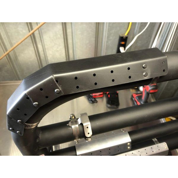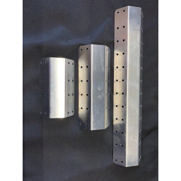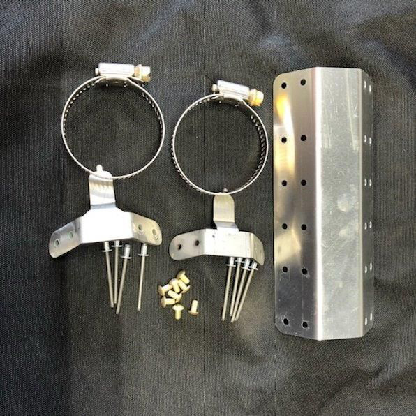 | Heat Shield system is very easy to install and can be tailored to your specific needs and application, to control reflected heat in your engine compartment. These block, and control unwanted radiated heat from hot exhaust tubing, thus protecting your cowl and engine accessories from destructive high temperatures. They are held fast in place, approximately ¼” off the hot surfaces with hose clamps around the pipes, or to the specific accessories, hose, line, tubes or item you wish to protect. Unlike most products in this category, they will not shake off or crack in a few hours. The attach brackets are made from .062” 14 ga. 301 stainless steel and will outlast your aircraft. The aluminum heat shields are 6061-T6 .032” pre-punched with properly spaced mounting and ventilation holes every one inch. This makes custom trimming and fitting to your needs very simple. The attach brackets can be fitted to the shields with .125” squeeze rivets, or you can use .125” stainless pop rivets with steel pull pins via the pre-punched holes. These heat shields are available in 4”/6”/12” lengths, and you can specify the tubing size you are going to mount to for proper clamp sizing. |
