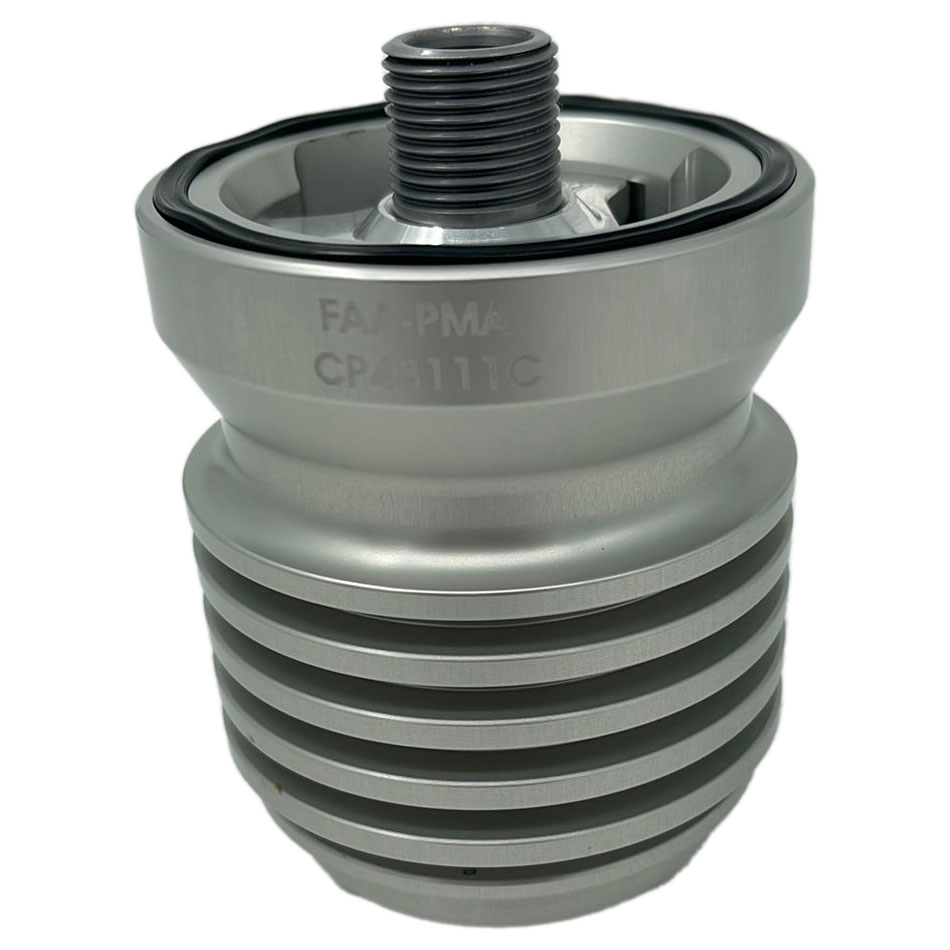 The filter element is made from medical grade, type 304 stainless steel micronic filter cloth providing unmatched protection against oil contamination and resultant engine damage. A rare earth magnet is installed in the top of the element for magnetic pre-filtering of the oil. The unique twist lock design allows for easy disassembly, inspection and cleaning. The quad-ring gasket doubles the seal between the filter and the engine . The filter housing is carved out of a solid piece of 6061 T6 billet aluminum with cooling fins, which not only looks good but aids in dissipating heat. |