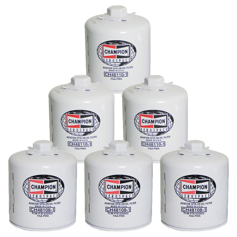 Spin-On Oil Filter CH48108-1 and CH48110-1 by Champion. Replaces oil filter element. Easy to install. Saves time and clean-up. FAA Approved