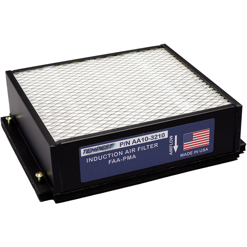 | Tempest AeroGuard™ induction air filters are approved on a variety of Cessna, Piper, Beechcraft and Mooney aircraft. They are manufactured using a black anodized aluminum housing and screen to prevent corrosion and fragmented media from being ingested. Designed to keep your induction system clean in the dirtiest environments, the synthetic media offers maximum airflow while still filtering out 99% of contaminants larger than 5 microns. These induction air filters will provide you with the high quality and durability you''ve come to expect with Tempest products. |