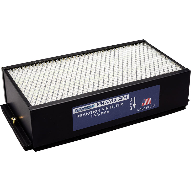 | Tempest AeroGuard™ induction air filters are approved on a variety of Cessna, Piper, Beechcraft and Mooney aircraft. They are manufactured using a black anodized aluminum housing and screen to prevent corrosion and fragmented media from being ingested. Designed to keep your induction system clean in the dirtiest environments, the synthetic media offers maximum airflow while still filtering out 99% of contaminants larger than 5 microns. These induction air filters will provide you with the high quality and durability you''ve come to expect with Tempest products. |