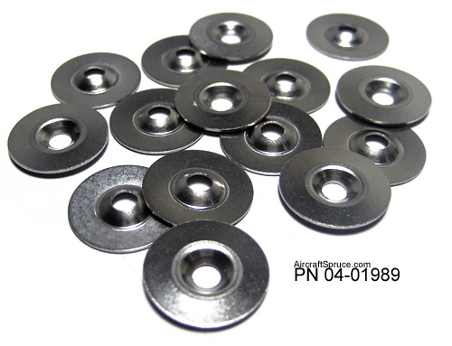 A No. 8 washer with the same O.D. as a No. 10 (0.75). Great for those oversize holes in fairings. Unlike the No. 10 washer with a No. 8 screw, these washers will tighten down on the fairing (not bottom out on the cone) thus providing the proper "clamp up" between the fastener and the fairing. The G-8 washers are Made in the USA from 304 (1/2 hard) Stainless Steel and are machine tumbled for a shiny finish. |