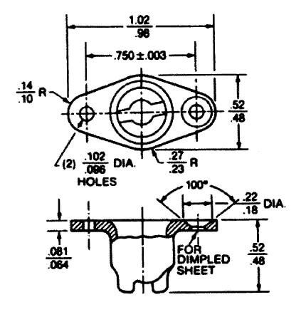 Regarding 214-16N, this would take a plain rivet for the mounting holes. For P/N# 214-16ND, this would use a countersunk (CSK) rivet for the mounting holes. The mounting holes are laid out differently for the type of rivet it requires.