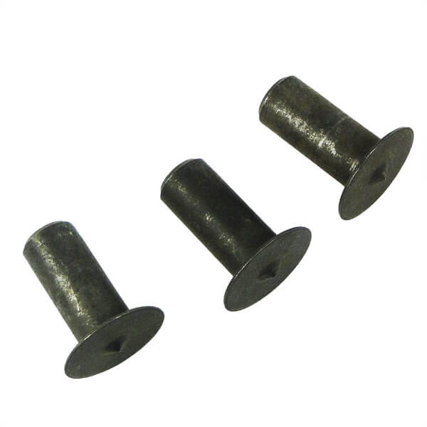 Used to locate pre-drilled holes in the wing ribs, fuel tank covers, panels, skin. Pre-drill the ribs, screw in the back markers, lay the skin sheet over the top, tap with hammer, turn the sheet over, and drill the holes. This is especially useful for rivetnut installation.Due to the large size of the hole required, small errors in location can lead to the "Oh darn, I missed the rib syndrome". Backmarkers save you hours of frustration. 2 sizes of threaded backmarkers are available. Drilling the wing ribs with a 3/32" drill. Drop in the back markers. Mark the skin by taping with a soft hammer. Turn the skin over and drill the skin with a 3/32" drill. Cleco the skin into position enlarge the holes with #30 drill & cleco. *THESE BACKMARKERS ARE RIBBED (THREADED). OTHERS ARE PLAIN. |