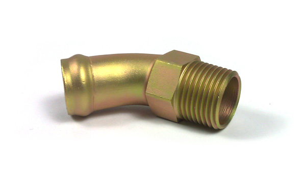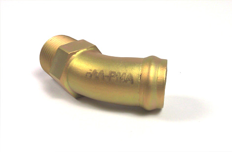 | A 3/8" 45° fitting used for either inlet or outlet ports with installations having 5/8" hoses. |