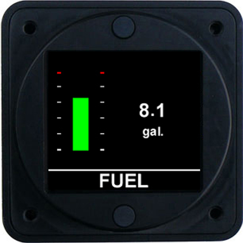 | Aerospace Logic AOG Expedite Available, additional charges will apply. Single Tank Fuel Level Instrument Instruments are advanced, next generation airborne fuel level reporting instruments that support two fuel tanks. Fuel level functionality is TSO'd and meets the repeatable accuracy requirements of SAE AS405C, +/- 1US Gallon. Functional displays include: Graphical indication of fuel level in the tank Digital fuel quantity for the tank Fully programmable color indication to meet all aircraft marking requirements Graphical fuel level indication, starting at power on These instruments are TSO'd and STC'd as a primary replacement instrument under all flight conditions (day/night VFR and IFR). It is a requirement of the STC that this be the only fuel level indicator, when installed. These instruments utilize the existing fuel senders. *FL201D Instrument for CIES Sender Version Only* |