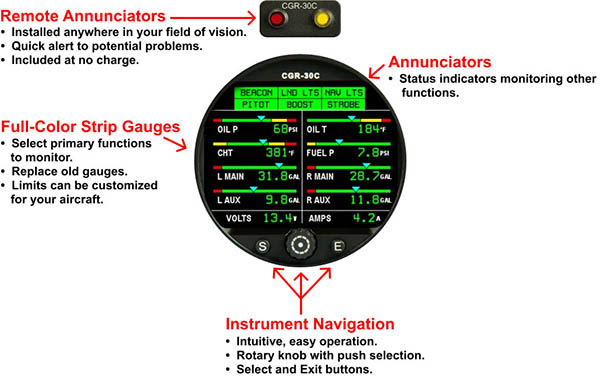 This combo package includes the CGR-30C & CGR-30P. TSO’d & STC’d as Primary Replacements. Instruments Fit Standard 3 1/8” Hole. Package Includes: