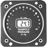| M-1 is a precision manifold pressure instrument featuring a 210 degree graphic analog display and a digital display. Measures absolute pressure in engine's manifold to .1" of mercury on the digital display. Enables pilot to make pre- cise throttle adjustment for max. performance during take- off, climb, and cruise. M-1 is easily installed by connecting to the aircraft's existing line through a 1/4" flare union in back of unit. Backlit and operates on 12 or 24V. Wt.: 13oz. |