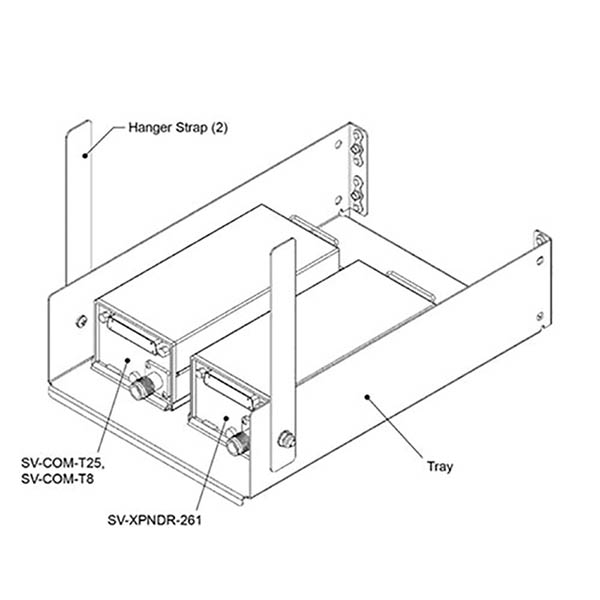 The Module Mounting Tray may be installed either upright or inverted, with module access provided via the included access cover, or from underneath the instrument panel, depending upon the accessibility provided by surrounding equipment. The kit comes with the module mounting tray with nut plates attached for mounting the SV-COM-T8/T25 or SV-XPNDR-261 module quick release chassis, a cover plate, mounting straps, and all hardware necessary for mounting modules and connecting the tray to existing structure. |