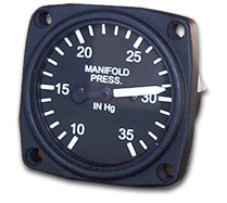 | Manifold pressure is one factor used to obtain correct power setting of the engine. The indicators are temp. and altitude compensated. Matte-white dials. 2-1/4" units are 10-35 Hg. |