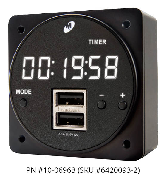 Mid-Continent Instruments and Avionics CHRONOS Digital Clock 6420093-2 Dual USB