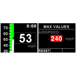The ASI-5 is a 3 1/8” sunlight readable instrument that provides a wide range airspeed indication in both digital and analog tape formats. Airspeed is based on the pressure generated by a pitot tube system and a static port is provided as well for use in high speed aircraft. In addition, the ASI-5 provides a flight timer since takeoff and records the maximum airspeed reached. Airspeed can be indicated in statute miles per hour (mph), kilometers per hour (km/h) or knots (kts). The analog airspeed tape can be scaled according to the aircraft’s flying speed range and ranges for Vs0, Vs1, Vfe, Vno and Vne can be set. The ASI-4 also provides a programmable Vs and Vne airspeed alarm output. ASI sensitivity can be calibrated by the user to cater for errors caused by pitot tube placement. The ASI-5 instrument measures airspeed from 16mph to 250mph and is well suited to slower aircraft due to very good sensitivity and linearity at low air speeds.  |