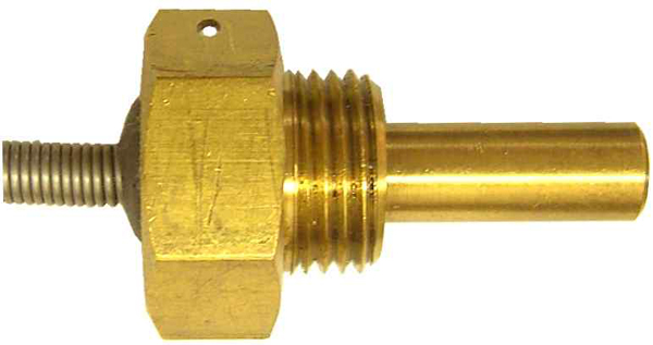UMA makes a complete line of temperature probes including solid state types. For engine monitoring, we have probes made of brass with thread sized from 1/4-28 to 5/8-18 and various metric sizes, as well as in many different lengths. We can custom make just about anything. We also have spark plug ring sensors. 10mm X 1.5 (0.4" tip length) |