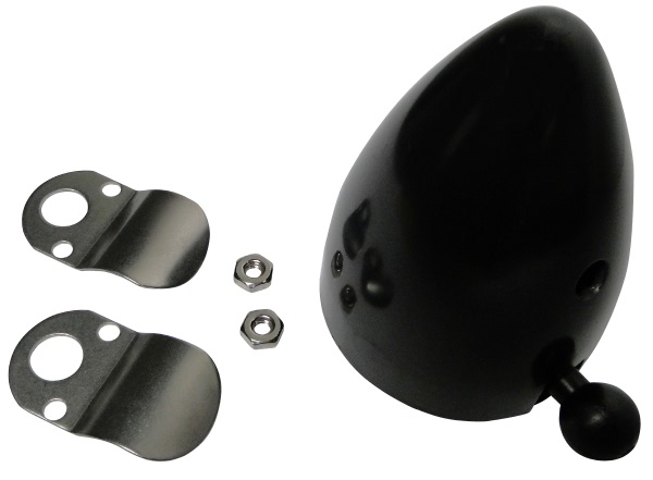 Molded plastic housing clamps to ultralite tubing or motorcycle handle bar. Swivels 360° at any angle. Furnished with polished stainless steel installation hardware.