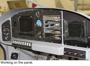 Joe Brown liked that idea and signed up in November 2010. He showed up for work at 6:30 a.m. on May 5, 2011 and was pleased to see that his Build Leader and “team” were already there. After coffee, doughnuts and a tour of the workshop, Joe plunged in. The night before he had studied the manual for the work to be completed on Day One and progress was swift. Every part needed for the day’s work was laid out on tables and shelves. Every tool was color coded and contained in large tool chests. An enormous checklist was hanging on the wall that guided him step by step through the process. Joe had some help from his eleven-year-old son, Jack, and an A&P mechanic/friend named Mark Runge. They worked from 7:30 to noon, took 30 minutes for lunch before going back at it until 5:00. That was quitting time, but Joe often found himself finishing up, cleaning up and debriefing with his Build Leader until 6:00. He’d go off for dinner, then he’d hit the books for the next day’s activity until it was time for sleep. The pace was intense and the progress each day was amazing. As members of the team directed him from one task to another, they would explain the function of each part he was fabricating, assembling or installing, taking time to articulate what it was for and how it would affect flight.
