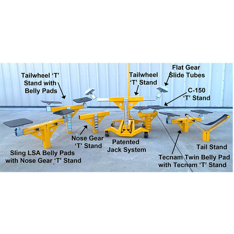 Note: Options to add additional parts will be offered once added to cart. This simple, safe, and efficient design allows for quick servicing or repair of aircraft wheel assemblies and main gear security. Built-in safety stops prevent unplanned lowering of the jack. The jack is ideal for the following activities: |