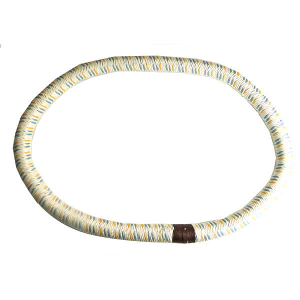 An endless elastic ring composed of multiple strands of natural rubber, wound into a circular skein. Braided cover is high grade yarn. Manufactured to meet specification MIL-C-5651B, Type II. Shock cord is used in landing gear to reduce shock transmitted to fuselage while landing and taxiing and on other shock mounting applications. Color coded to insure fresh stock.