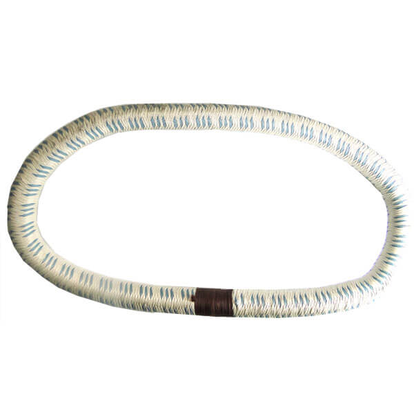 An endless elastic ring composed of multiple strands of natural rubber, wound into a circular skein. Braided cover is high grade yarn. Manufactured to meet specification MIL-C-5651B, Type II. Shock cord is used in landing gear to reduce shock transmitted to fuselage while landing and taxiing and on other shock mounting applications. Color coded to insure fresh stock.